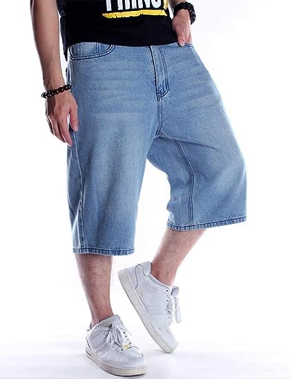 Men’s loose fit straight leg relaxed Hip Hop denim shorts for junior/teens.